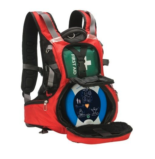 The Heartsine Samaritan PAD Rescue Backpack allows you to transport your PAD AED as well as all other necessary accessories into any scenario or environment. The Backpack is well designed and sturdy, with padding in the back, with adjustable chest and waist straps for both adults and children. The Backpack has separate zippered spaces for the PAD AED and for the First Aid Kit, as well as storage pockets and mesh side pockets. The letters “AED†are clearly displayed on the front of the Backpack, and the pack has reflective safety strips for visibility.